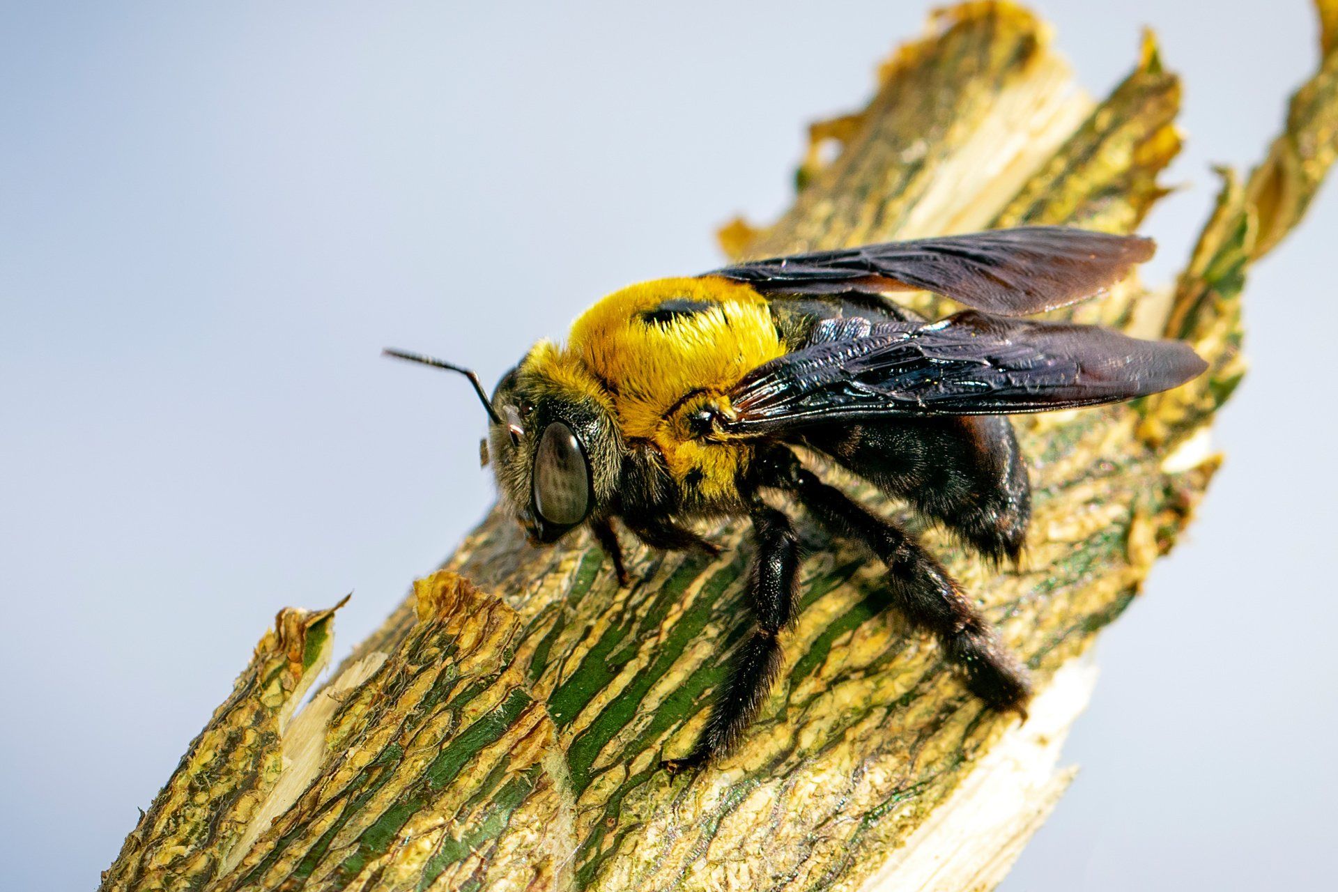 These bees chew day and night through the spring, on any exposed wood on or around your home. Piles of sawdust are a dead giveaway that you may have Carpenter bees chewing on your deck or wood on the home. We treat all of the wood on the home. This will ensure that carpenter bees find the wood on your home unappealing and move on to the next one. This is a popular option for cabin owners, homes with wooden sidings, shutters or soffits, and homes with wooden decks.