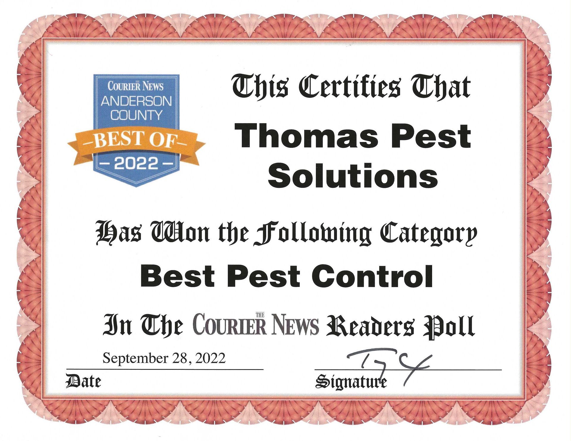 Thomas Pest Solutions strive to provide you quality services at an affordable price, please don't hesitate to call and ask for pricing.